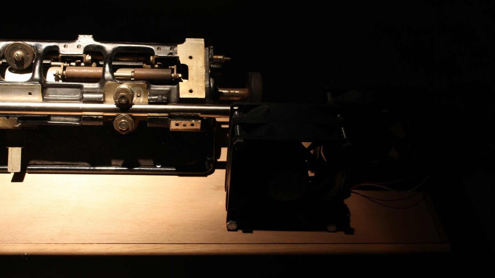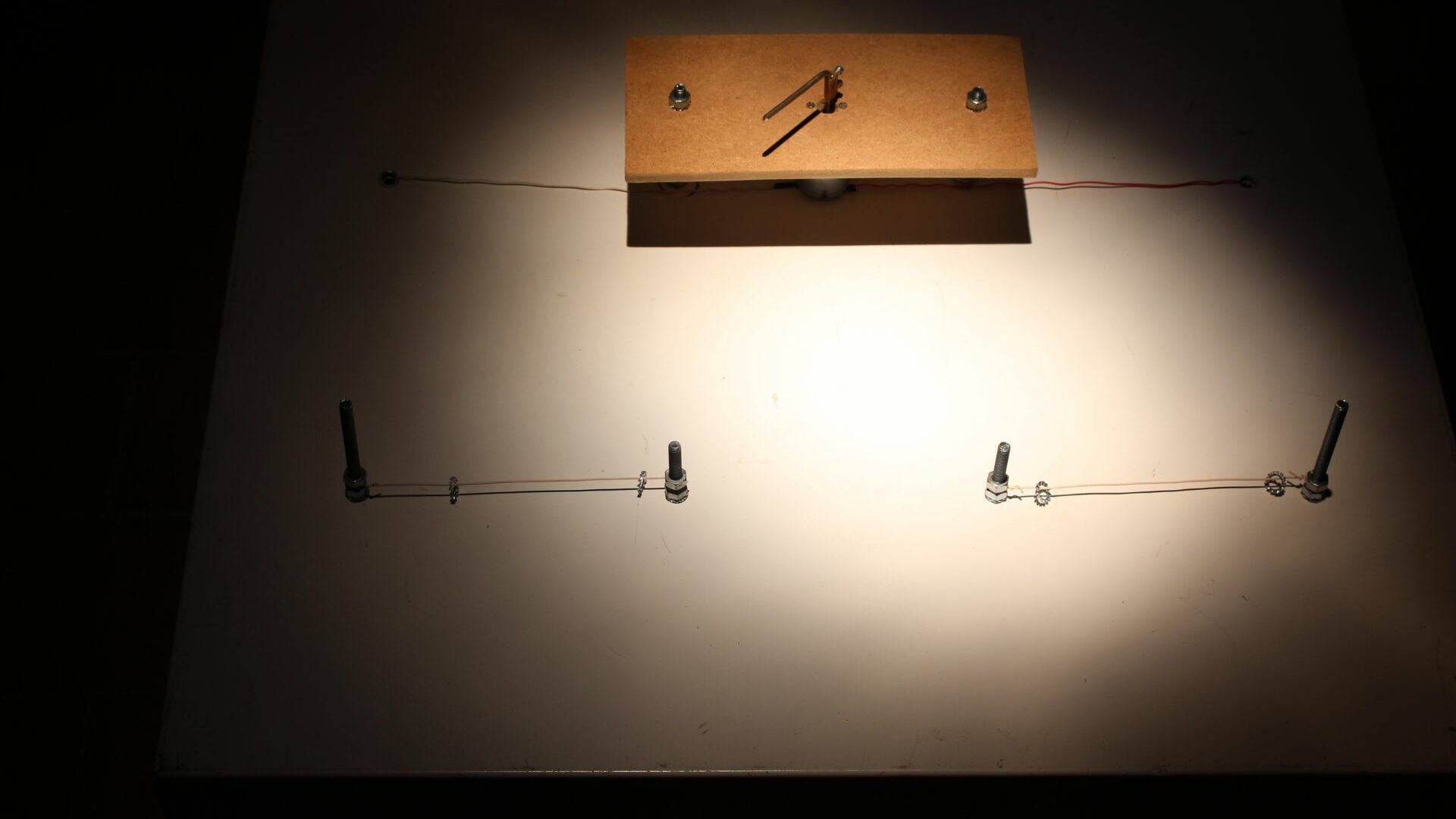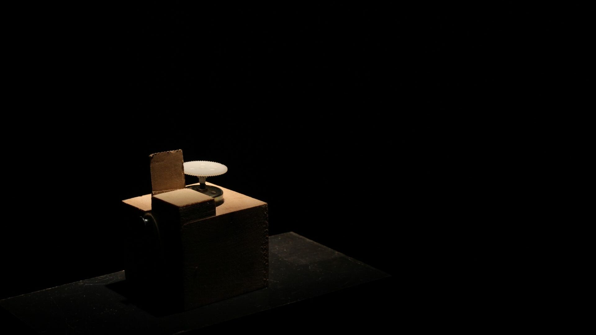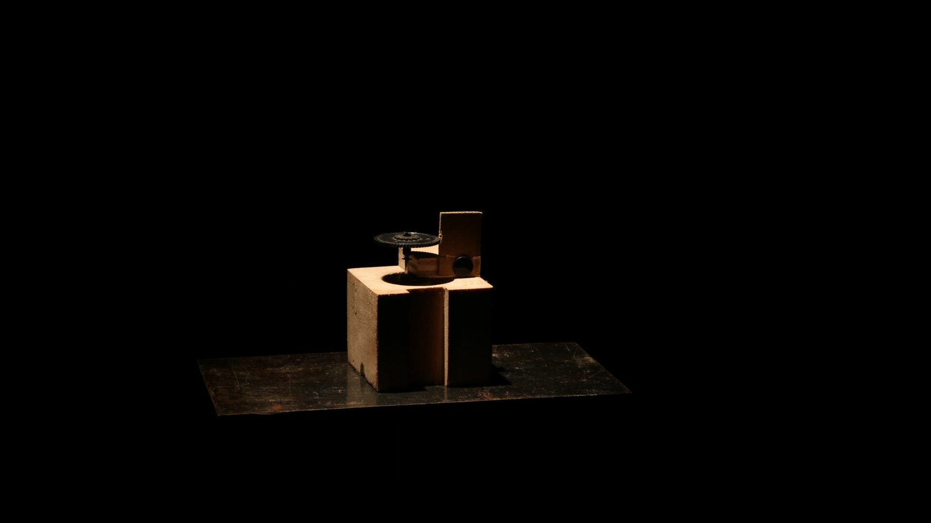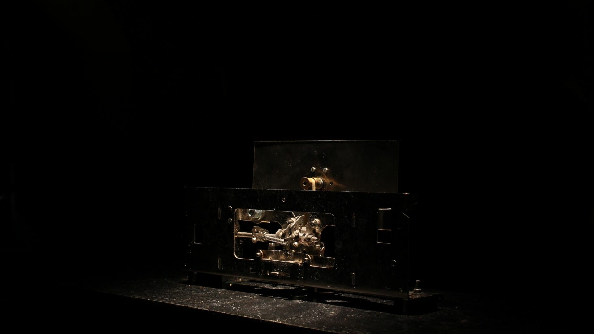 L’installation consiste à rendre sonore une vidéo à l’origine muette via des objets mécaniques disposés directement dans l’espace de projection derrière l’écran. Tel un orchestre, ces mécanismes se déclenchent au gré du montage et des événements dans l’image pour constituer la bande son du film en intégralité.