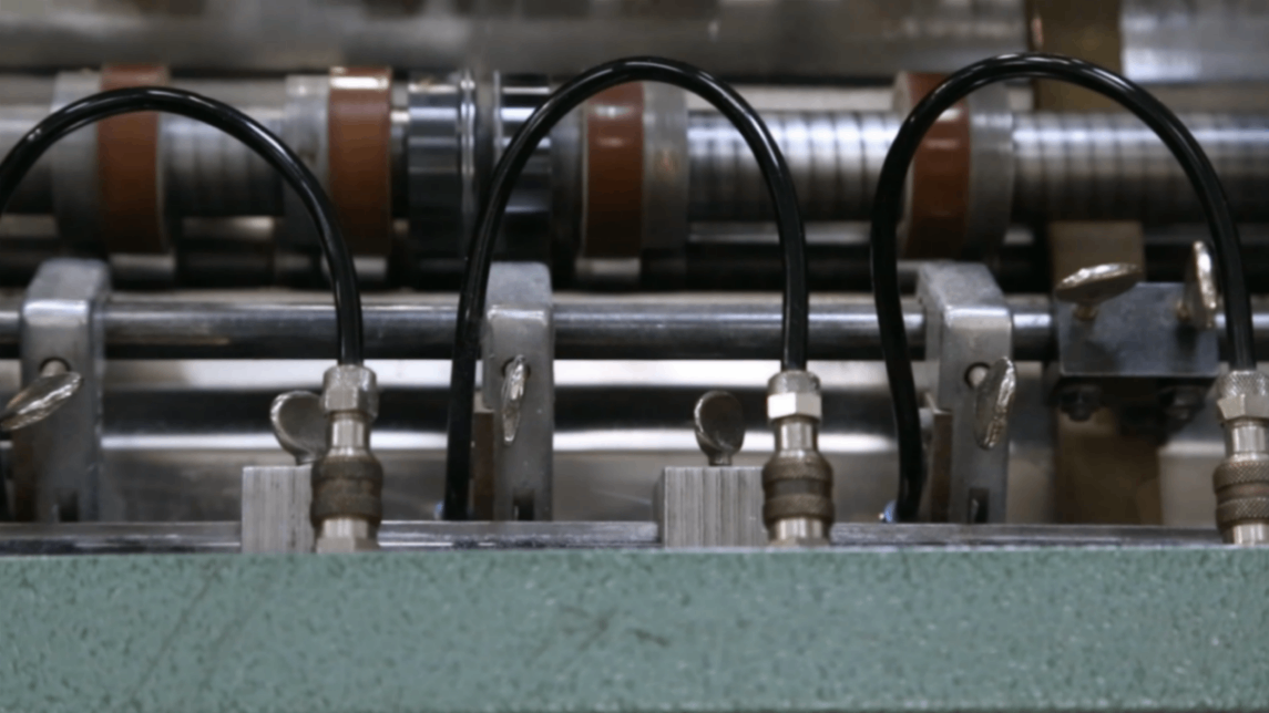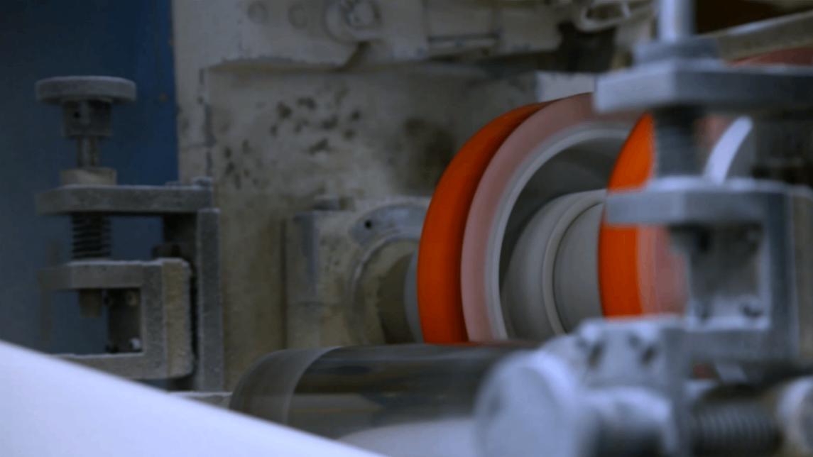 Lorsque le spectateur pénètre dans l’espace d’exposition que Tanguy Clerc a conçu, il pense assister tout d’abord à une projection vidéo dans le plus pur style des symphonies mécaniques des années 20-30. En effet, sur l’écran, dénué de présence humaine, des images de machines en plus ou moins gros plans nous plongent dans un monde entièrement mécanisé accompagné par un son parfaitement raccord. Les images ont été filmées dans les imprimeries Firmin Didot et Soregraph sans aucune présence humaine, qui rappelle notamment le film de Jean Mitry Symphonie mécanique (1955).